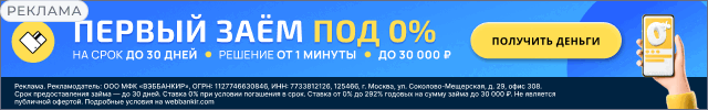 Первый заём до 10 000 рублей выдается по ставке 0% в случае своевременного погашения; Процентная ставка по займам от 30 до 360% годовых, по потребительским кредитам и кредитным картам - от 17 до 31% годовых. В случае нарушения сроков, размер неустойки составляет 0,10% от суммы просрочки в день, но не более 10% от суммы кредита; В случае длительной задержки выплаты информация будет передана в БКИ